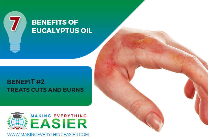 Eucalyptus essential oil has long been used to treat cuts and burns. The oil contains a compound called eucalyptol, which has antiseptic and anti-inflammatory properties. When applied to the skin, eucalyptus essential oil can help cleanse the wound, reduce swelling, and speed up healing. Additionally, the oil can help prevent infection by keeping harmful bacteria at bay. For these reasons, eucalyptus essential oil is an effective treatment for cuts and burns.