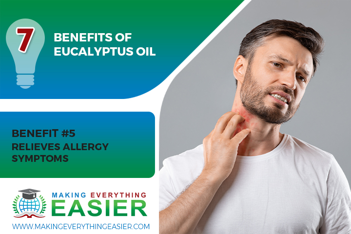 Eucalyptus oil has a wide range of benefits, including the ability to relieve allergy symptoms and pain. The oil is derived from the eucalyptus tree, and its main active ingredient is called eucalyptol. This compound has powerful anti-inflammatory and analgesic effects, making it ideal for treating allergies and pain. Additionally, eucalyptol has been shown to improve airflow and mucus production in the respiratory system, making it easier to breathe. For these reasons, eucalyptus oil is an effective natural remedy for allergies.
