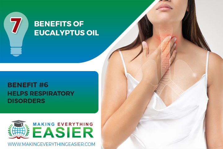 There are several different ways that you can use eucalyptus oil to help relieve respiratory disorders and pain quickly at home. One way is to add a few drops of eucalyptus essential oil to a bowl of steaming hot water and then inhale the vapors for five to ten minutes. You can also add a few drops of eucalyptus essential oil to a diffuser and breathe in the air for ten to fifteen minutes. Another way to use eucalyptus essential oil is to add one to two drops to a tissue or handkerchief and inhale as needed throughout the day. Finally, you can mix a few drops of eucalyptus essential oil with a carrier oil, like coconut oil, and massage it to your chest and neck.