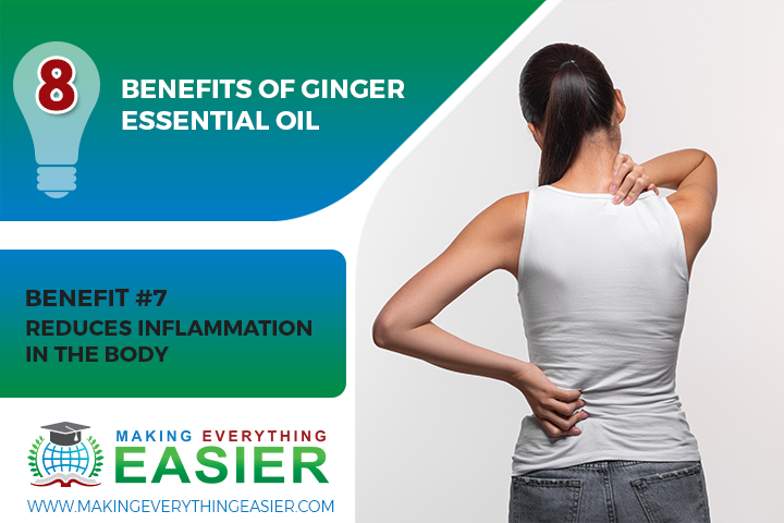 Ginger oil is a natural anti-inflammatory. The compounds gingerol and zingiberene in ginger oil have been shown to reduce inflammation. One study found that topical application of two percent of ginger oil can significantly reduce inflammation in people with arthritis.