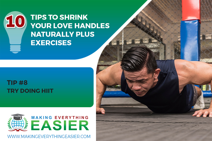 High-intensity interval training (HIIT) is a type of exercise that alternates between short bursts of intense activity and brief periods of rest. HIIT can help burn more calories in less time. It is particularly effective for losing love handles.