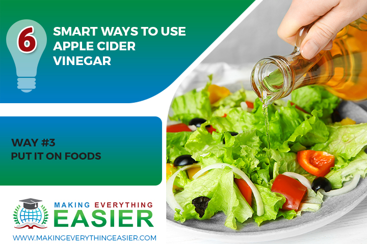 There are many ways to benefit from apple cider vinegar, and one of them is to put it on foods. This can help improve the flavor of foods and also make them healthier. Apple cider vinegar is high in acetic acid, which has been shown to have several health benefits.
