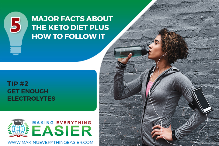 In addition to getting enough electrolytes, it's also vital to drink plenty of water when following the keto diet. This will help prevent dehydration and ensure that your body is getting the fluids it needs. Aim to drink eight to ten glasses of water per day.