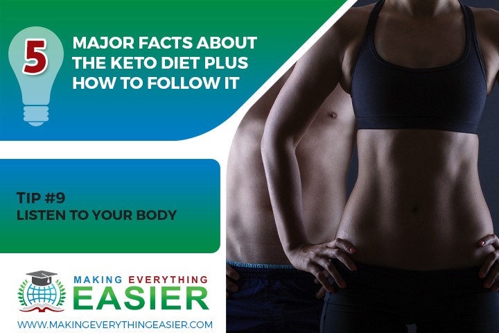 Last but not least, it's important to listen to your body when following the keto diet. This means paying attention to your hunger cues and eating when you're hungry. It also means listening to your body when it comes to exercise. If you're feeling tired or rundown, it's okay to take a break from exercise or cut back on the intensity.